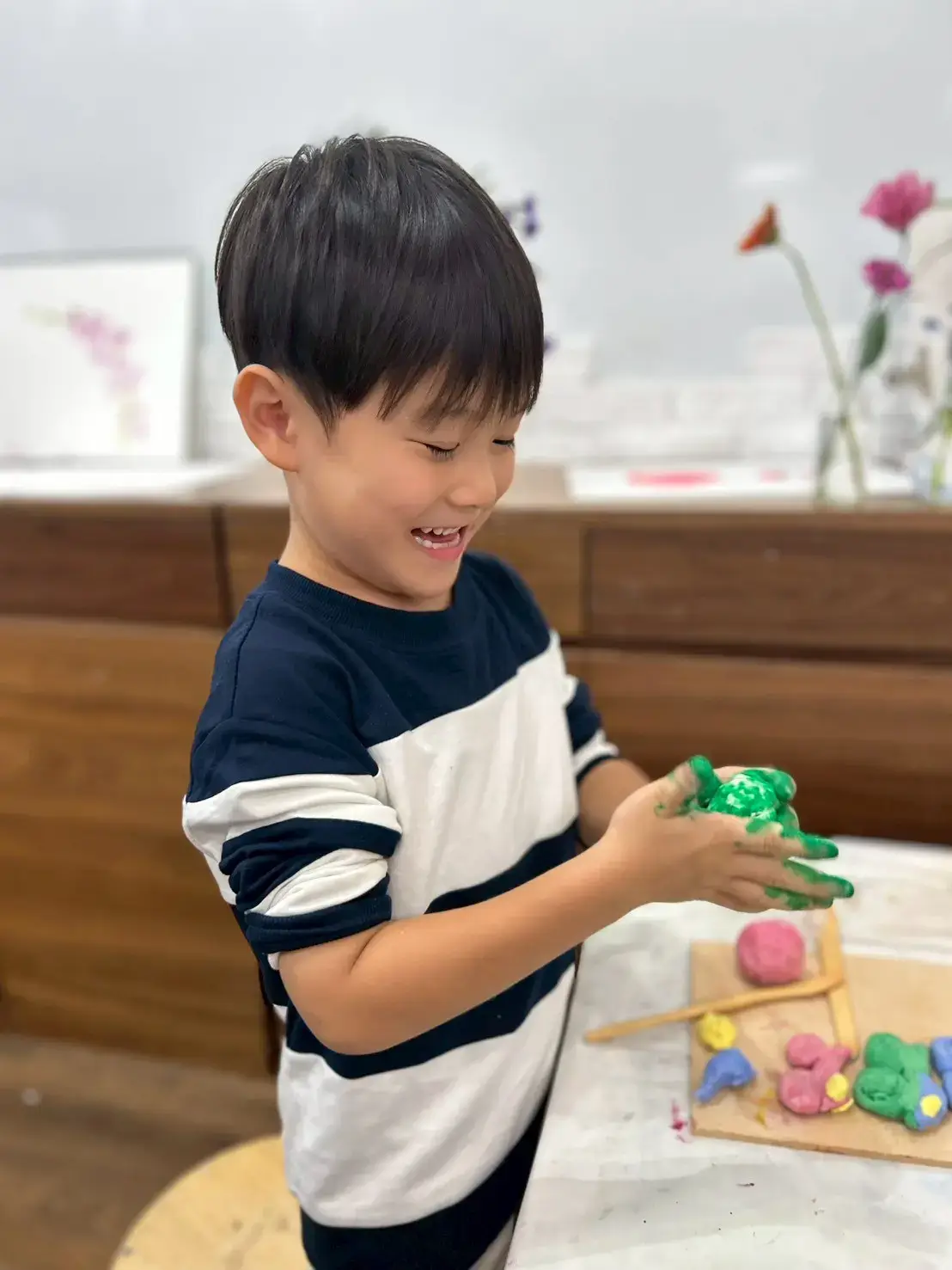 絵や工作、粘土遊びなど幅広く体験できるので、飽きることがありません。